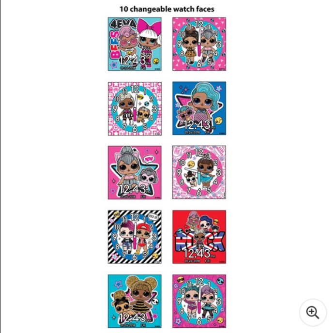 Zahrajte si 6 vestavěných her na svém LOL Surprise! chytré hodinky pro děti a vyberte si z 10 různých ciferníků.
