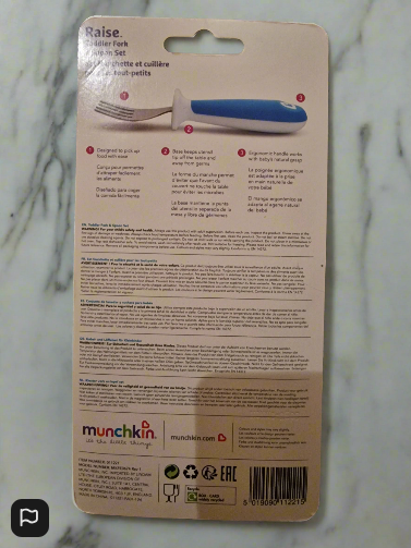 Make mealtimes easier and more hygienic with the Munchkin Raise Toddler Fork and Spoon Set. Designed for little hands and growing appetites, this set includes a fork and spoon with ergonomic, easy-grip handles that help toddlers learn to self-feed with confidence. The innovative elevated base keeps utensil tips off tables and surfaces, helping to reduce mess and keep things clean. Made from BPA-free materials, it's a safe and practical choice for everyday use.