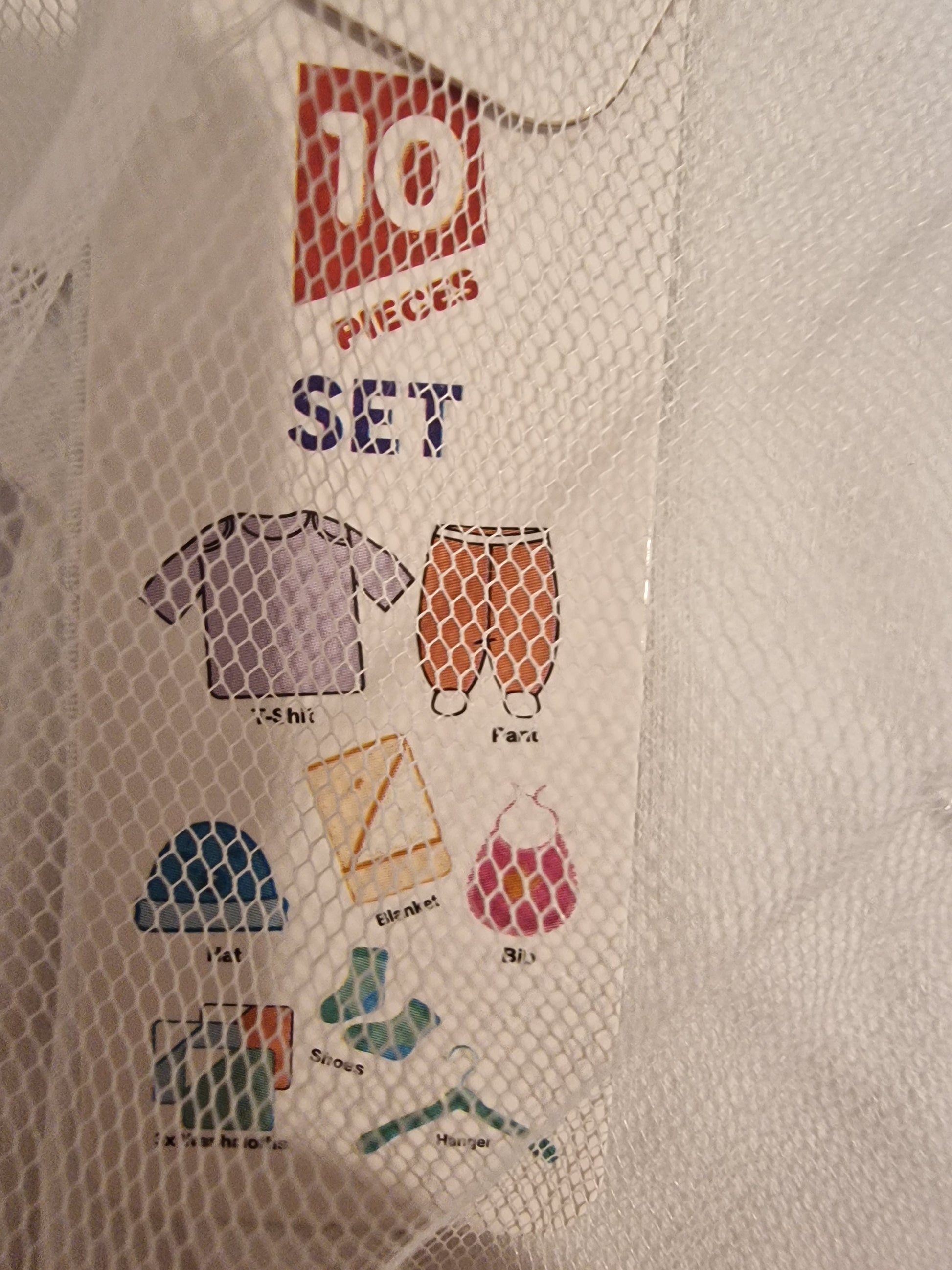 1x t shirt 1x pants 1x Matching Hat 1x Pair of socks 1x Bib 1 x blanket 3 x washcloths 1 x hanger
