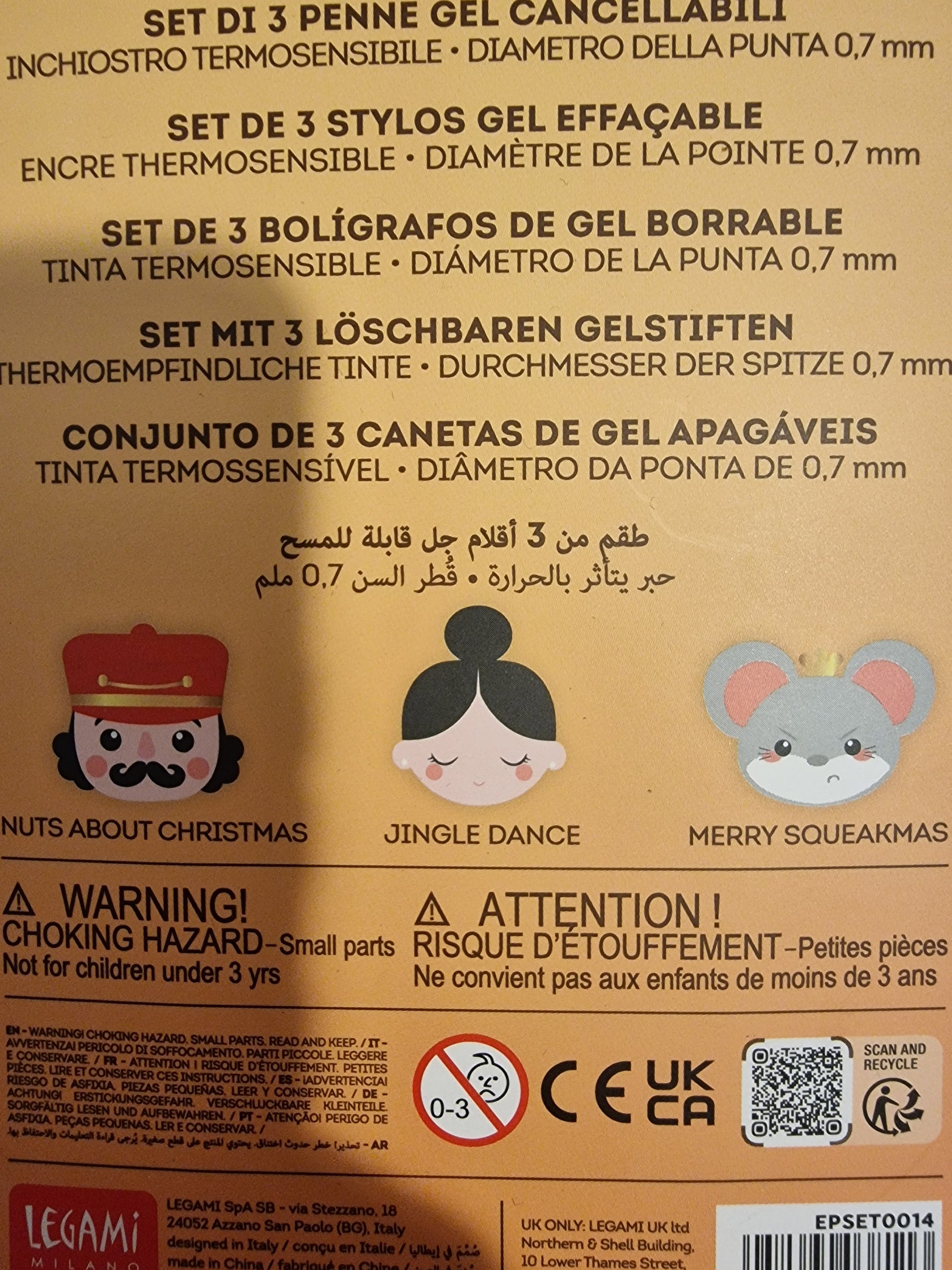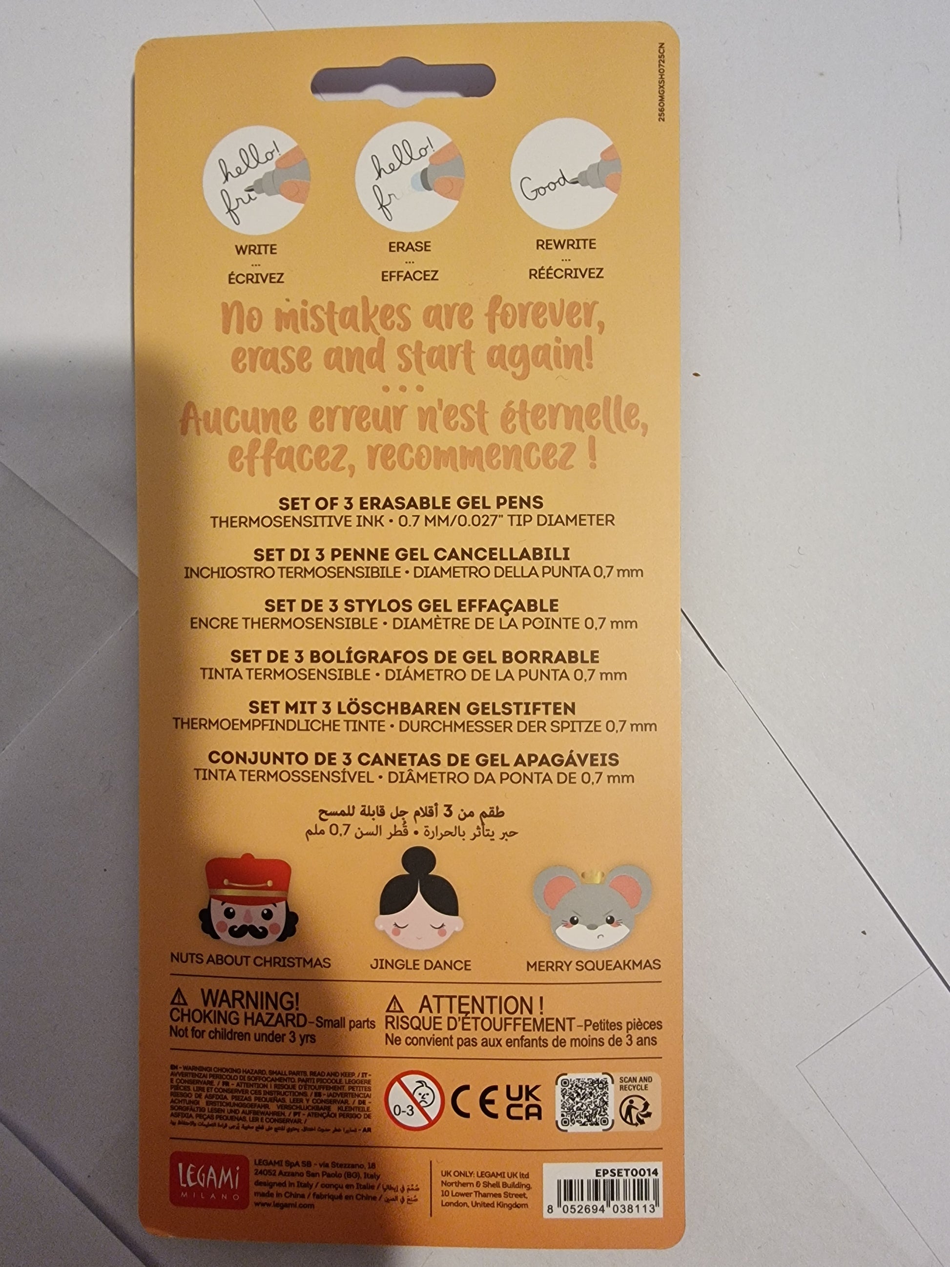 Legami Milano Erasable Gel Pens - The Nutcracker Limited Edition (Set of 3)