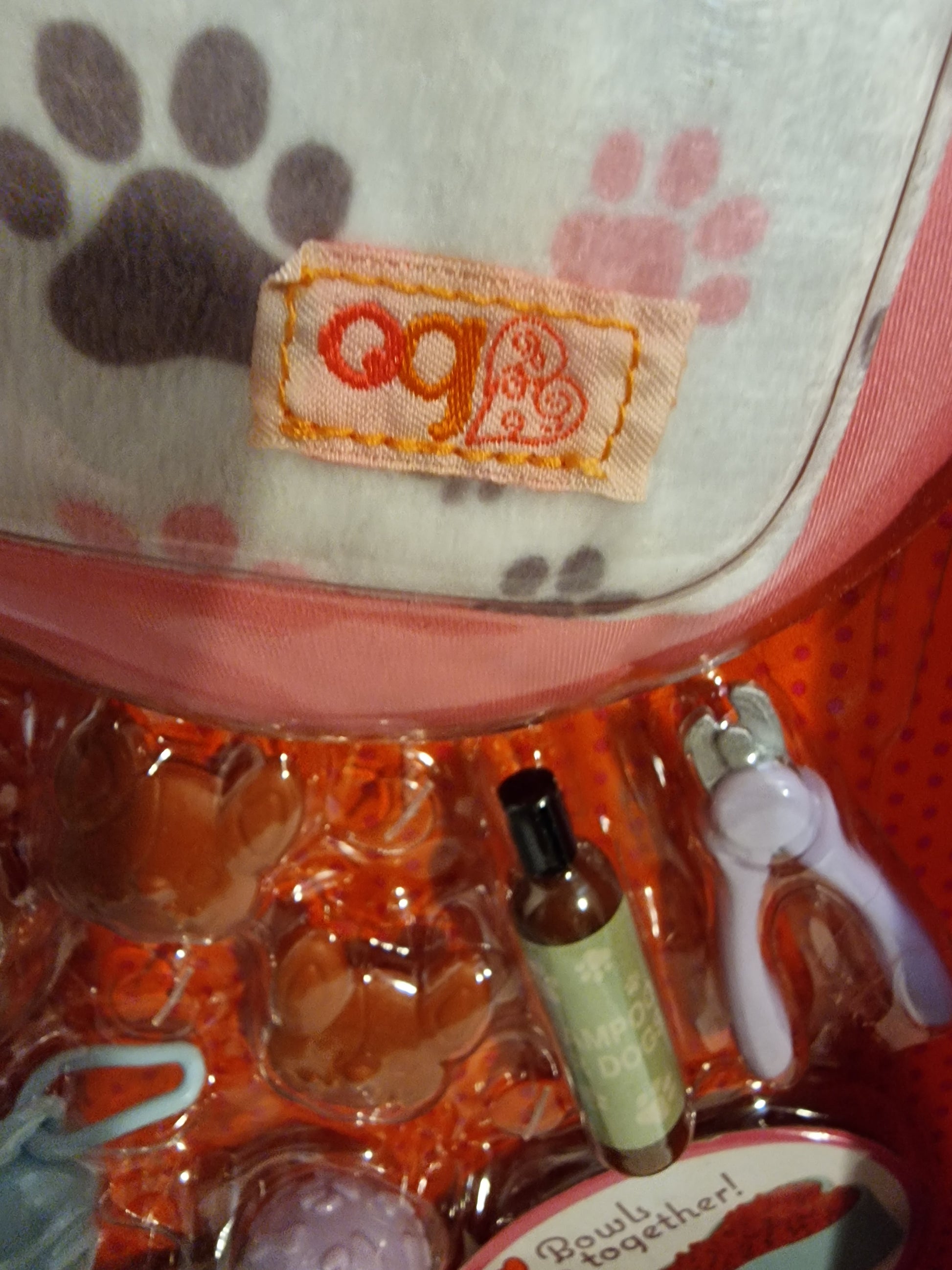 Set Includes: Dog bed, blanket, food bowls, travel container, treats, brush, shampoo, nail clippers, toys, and care checklist.