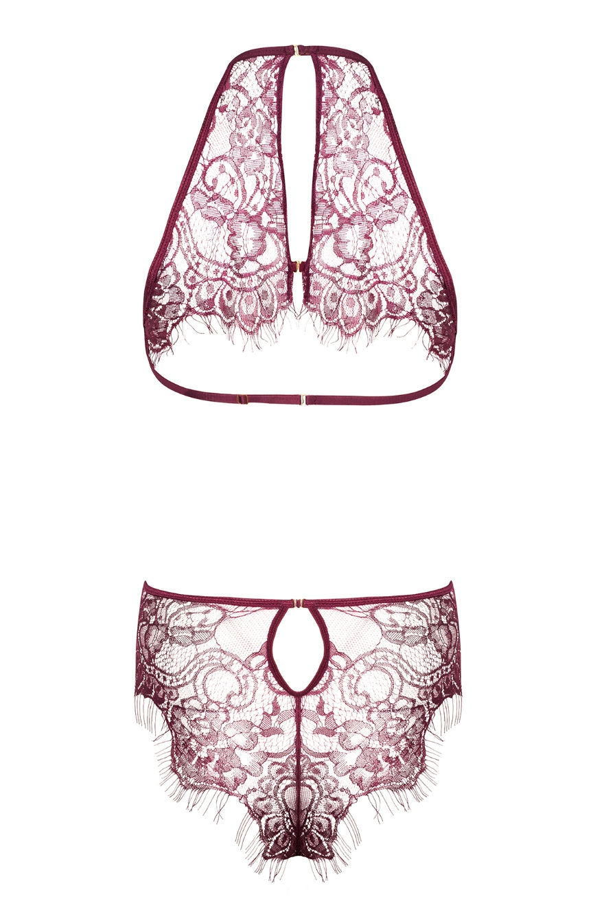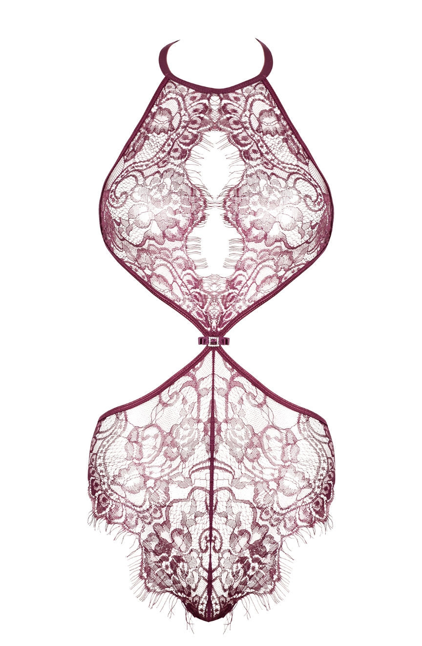 Jordana is dreamlike and made from beautiful rich purple lace. This delicate eyelash lace with beautiful floral pattern has a sexy cut at the waist charmingly revealing the hips. The back body is also stunning with a fancy finish that adds a unique charm. Set in the elegant packaging with the picture presenting the product marked with the hologram from the logo Beauty Night Fashion. Bag-pouch for storage or laundry included.